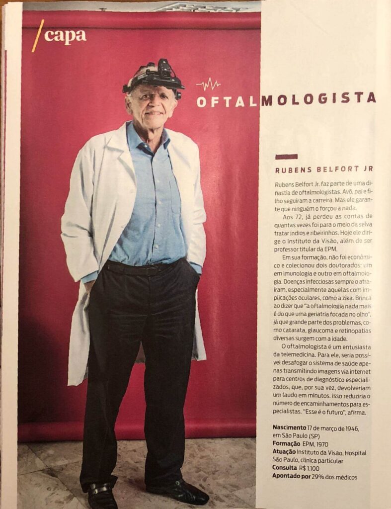 Sabemos que não existe o melhor médico numa determinada área. No Brasil temos a sorte de ter médicos excelentes em todas as especialidades, mas ficamos muito felizes pelo Prof Rubens Belfort ter sido escolhido pelos colegas médicos como o “melhor” oftalmologista da cidade. Mérito pelos anos de dedicação e amor pela medicina e pelos pacientes.