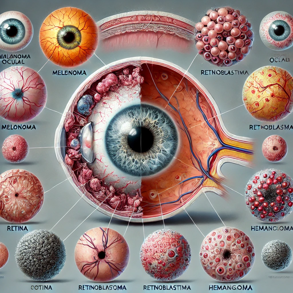 Os tumores que surgem dentro do olho podem afetar a retina, a coroide e o nervo óptico. Entre os principais tipos, destacam-se: